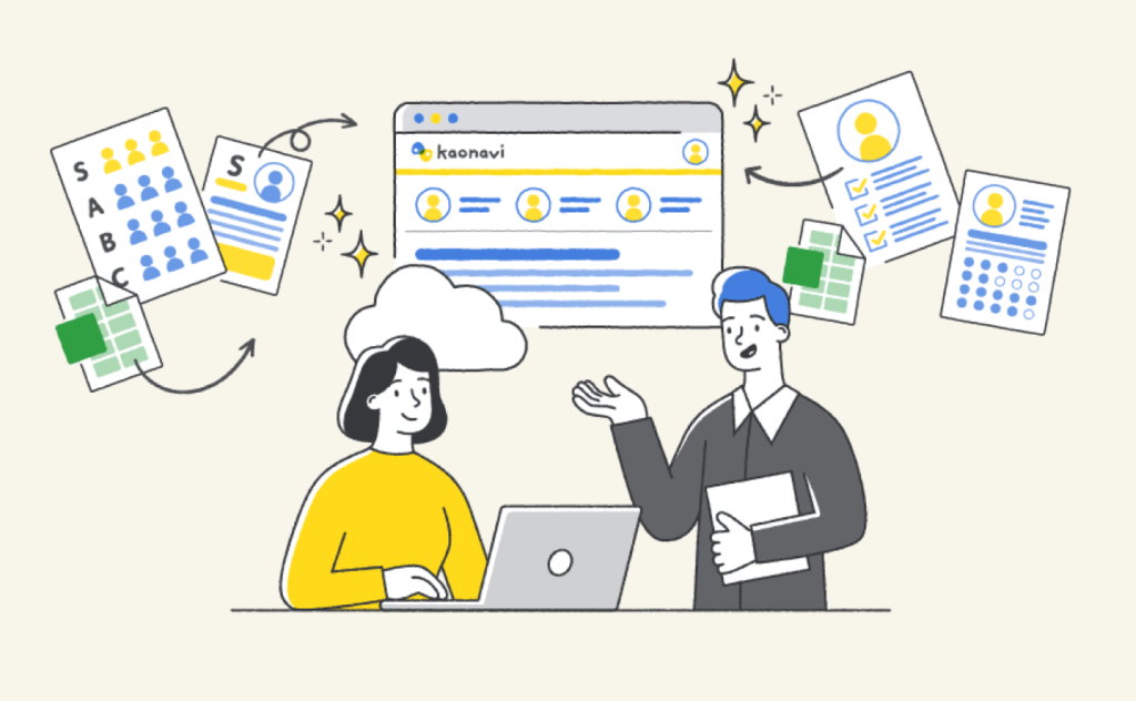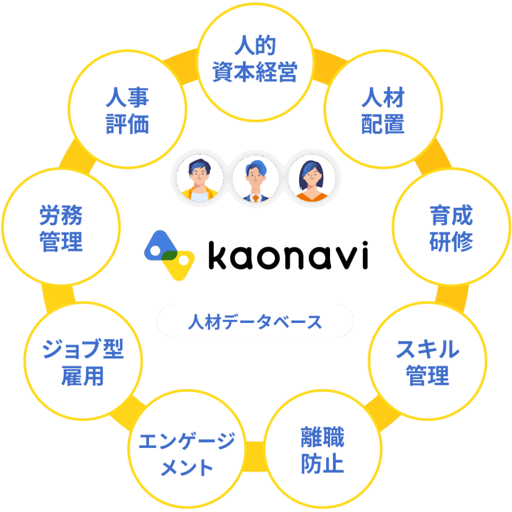 カオナビは、社員の顔と名前、経験、評価、スキルなどの人材情報を一元管理し、可視化できるタレントマネジメントシステムです。