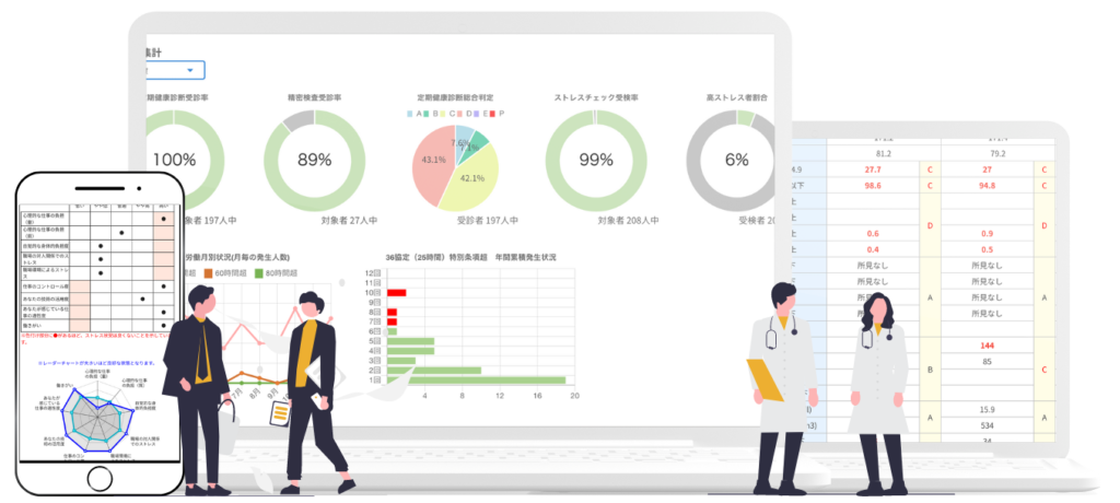健康診断データやストレスチェックの結果を基に、企業全体の健康課題を可視化できます。